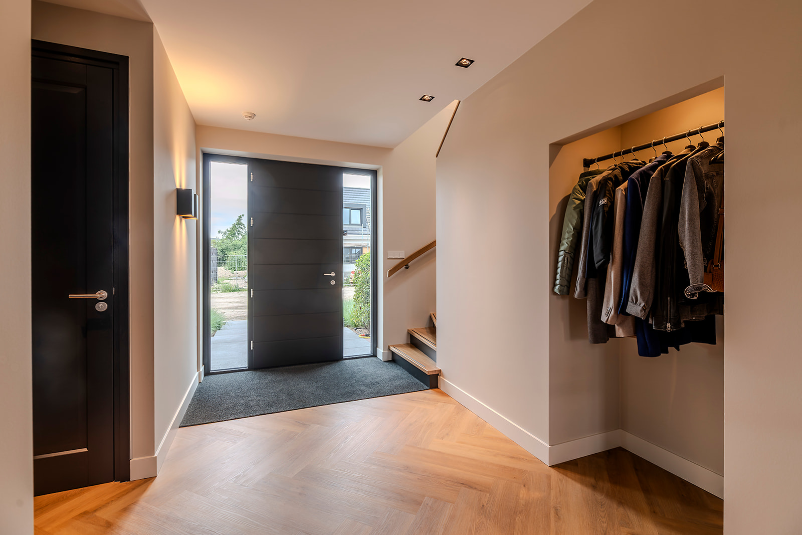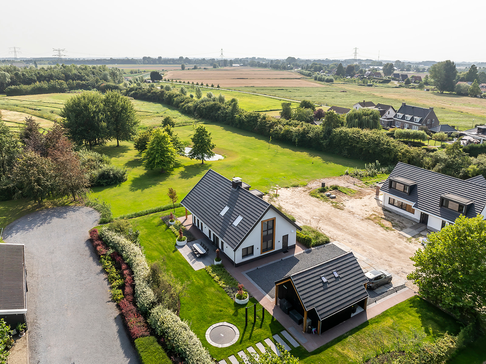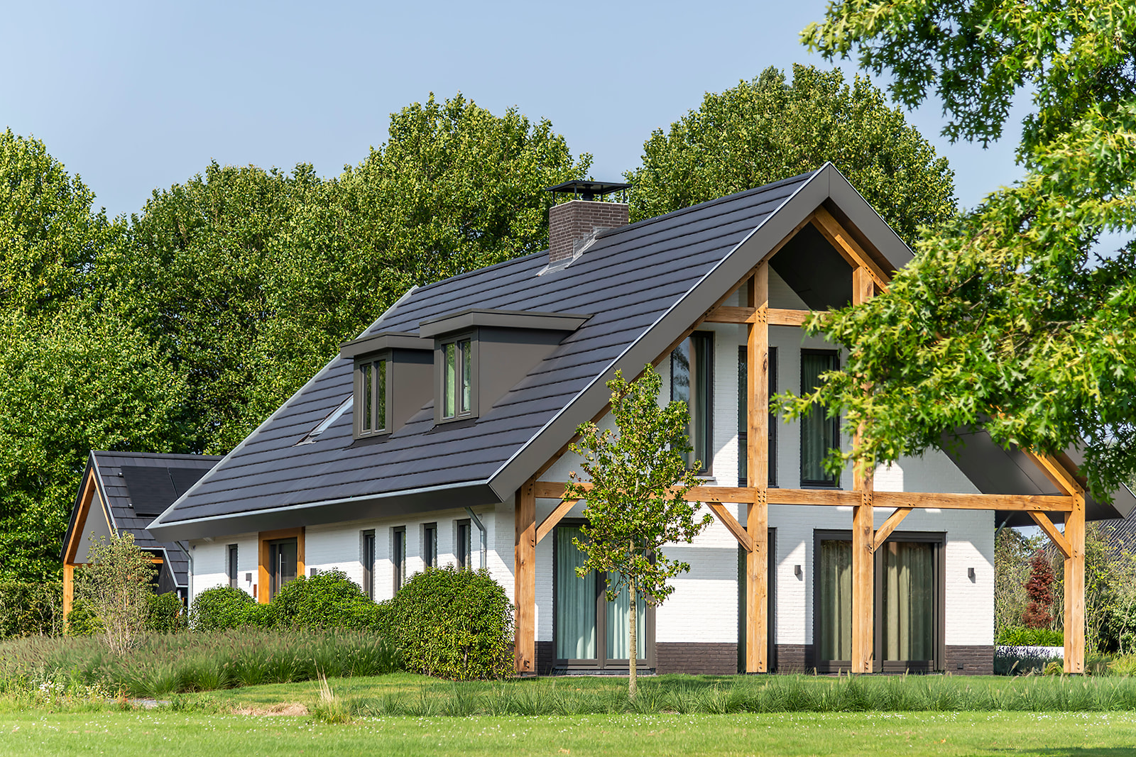 Binnen is gekozen voor een doorkijkhaard die de woonkamer en keuken op een sfeervolle manier met elkaar verbindt. De woning heeft een open structuur. Hierdoor voelen de ruimtes ruimtelijk aan en kan het daglicht via de vele raampartijen rijkelijk naar binnen stromen.